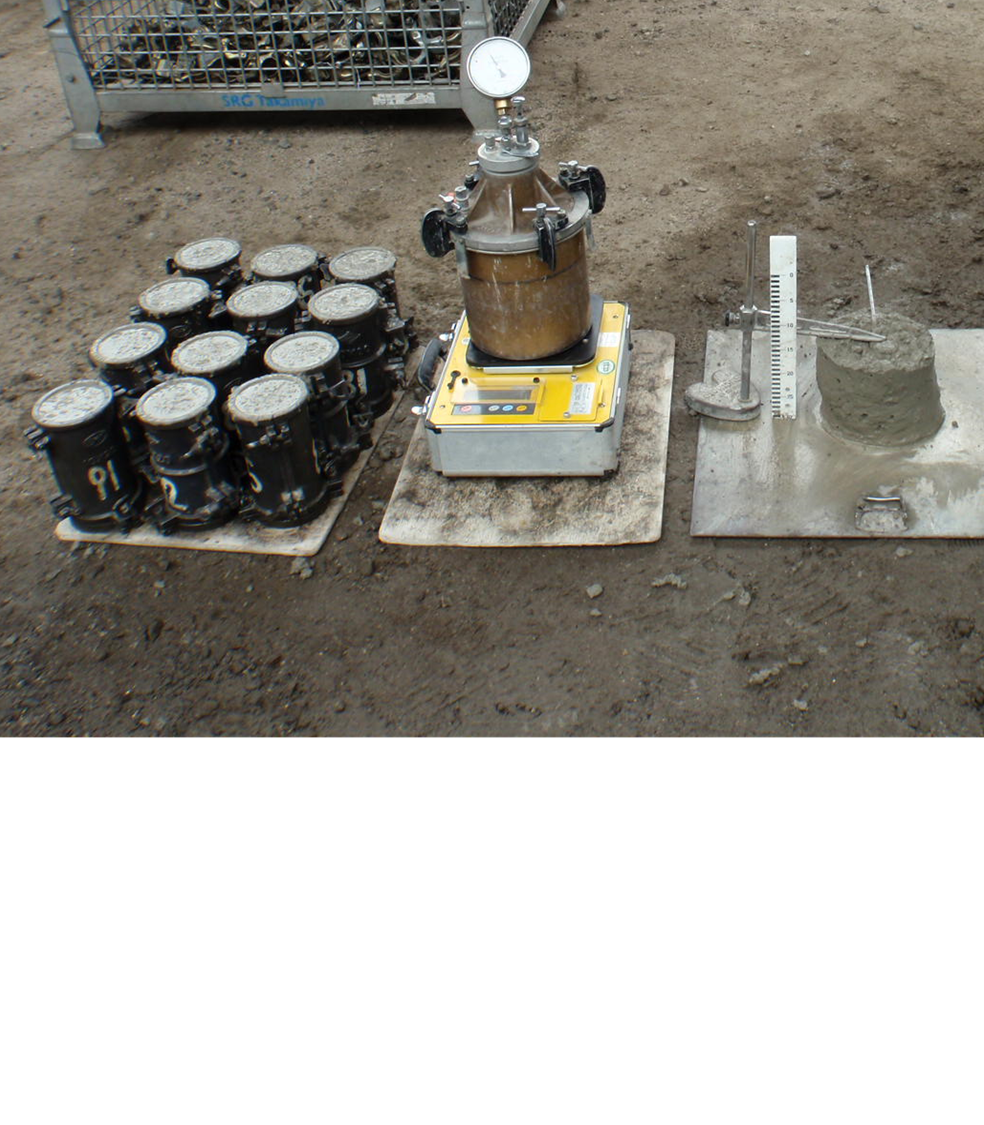 コンクリートのコンシステンシーを測定する方法には,スランプ試験,フロー試験,振動台式コンシステンシー試験,レオロジー試験などがあります。