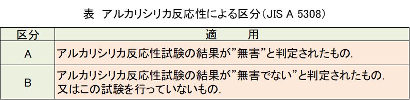アルカリシリカ反応性による区分