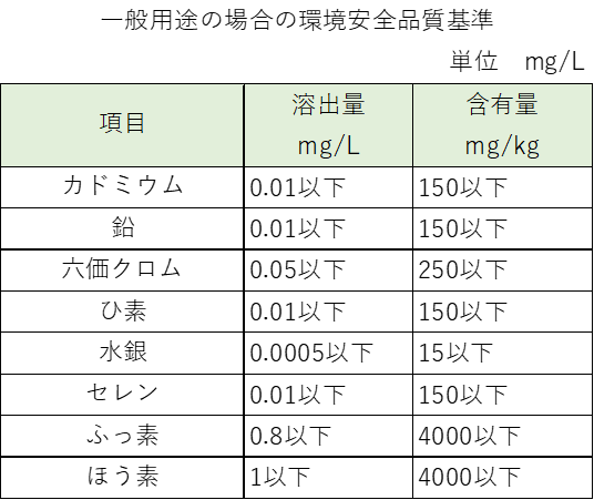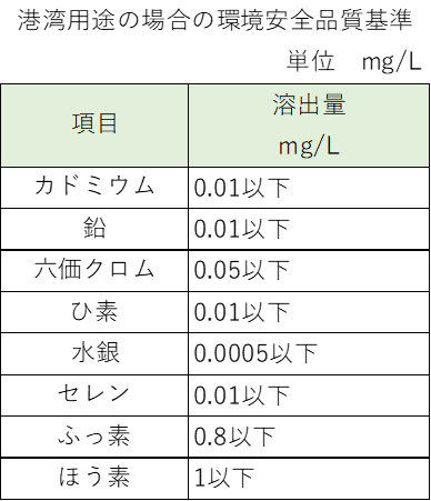 溶融スラグは、重金属類の有害物質を含有し、溶出することがあるため環境安全基準が定められている。(下表は高炉スラグの環境安全基準)