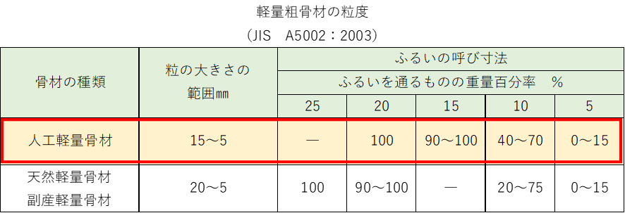 軽量粗骨材の粒度
