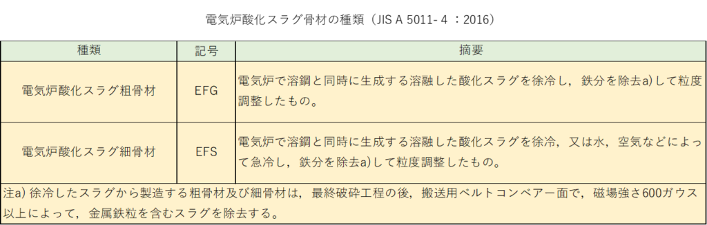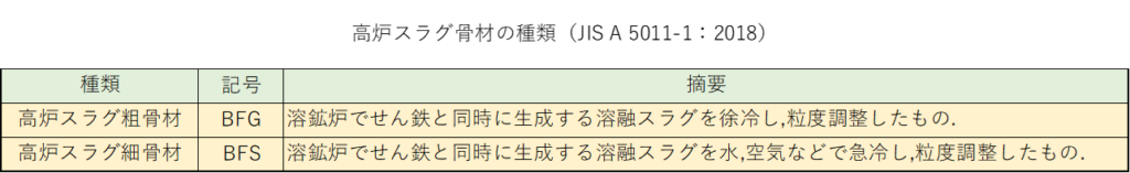 コンクリート工学会のホームページにコンクリート用スラグ骨材の種類と特徴が掲載されていますので、是非そちらも参考にしてください。