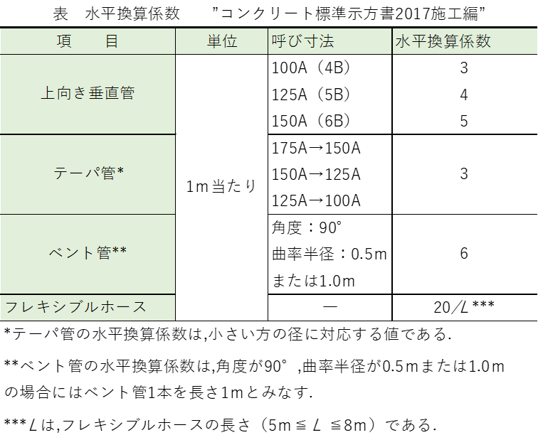 - 垂直管・ベント管・テーパ管・フレキシブルホースを水平換算係数で換算