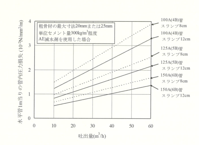 → スランプが小さい・管径が細い・吐出量が多いほど、圧力損失は大きくなる