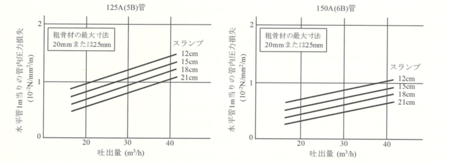 また、下の図では、スランプが小さいほど管内圧力損失が大きくなる。というのがはっきり分かります。