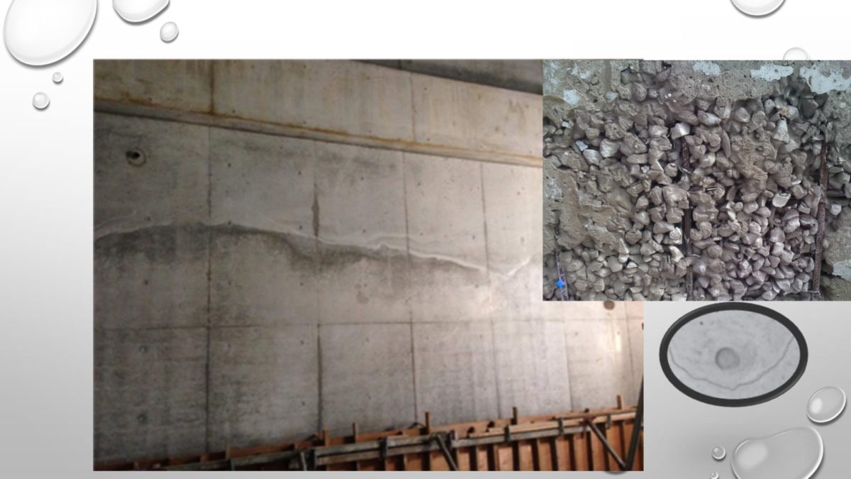ã³ã³ã¯ãªãŒããå±€ç¶ã«æã¡éããéãå ã«æèšããäžå±€ã®ã³ã³ã¯ãªãŒãã硬åãå§ããŠããŸããåŸããæèšããäžå±€ãšäžäœåããã«çãããäžé£ç¶é¢ïŒçé¢ïŒãã®ããšã 鿬ã®é å»¶ãæ®µåããã¹ãæ©æ¢°ãã©ãã«ãªã©ãäž»ãªåå ã§ãã