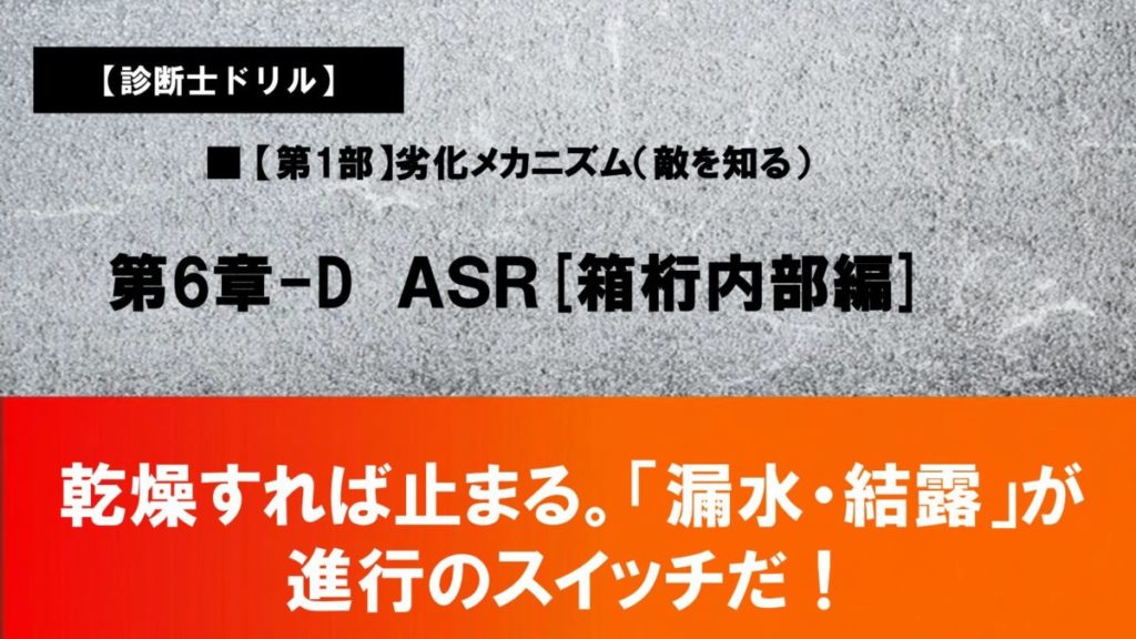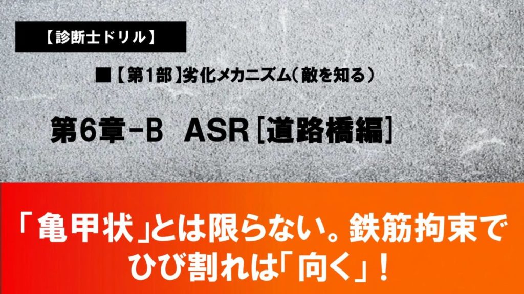 ASR特有の「ひび割れパターンの見極め」や「試験に出る記述の型」を身につけたい方は、記事と合わせてご活用ください。