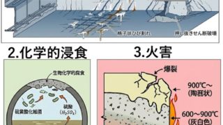 💡これまで扱った「中性化」「塩害」「ASR」は、どこでも起こりうる普遍的な劣化でした。一方、今回解説する**「疲労」「化学的侵食」「火害」**は、発生環境が限定的ですが、他にはない際立った特徴を持っています。試験では**「構造物の用途」と「...